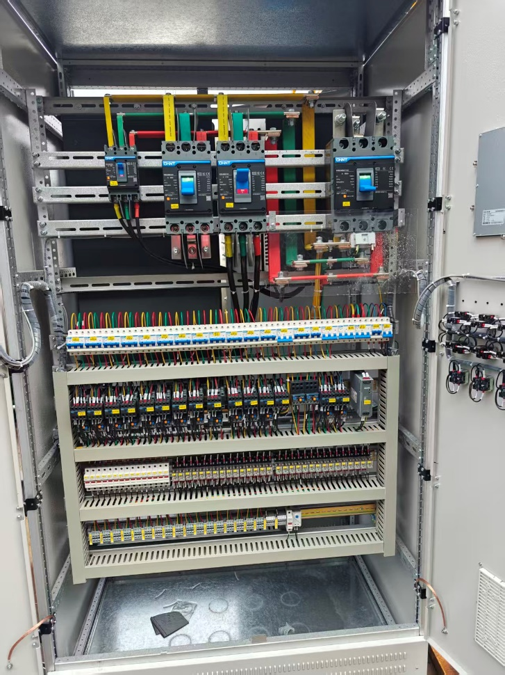 河南某厂MVR蒸发器,的电气柜设备。MVR蒸发器是一种利用自身产生的二次蒸汽作为热源,从而大幅降低能耗的高效节能蒸发设备。