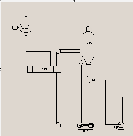 强制循环蒸发器由蒸发分离器、换热器和强制循环泵组成。物料在换热器的换热管内被换热管外的蒸汽加热温度升高。在循环泵作用下物料上升到蒸发分离器中,在蒸发分离器内由于物料静压下降使物料发生蒸发。